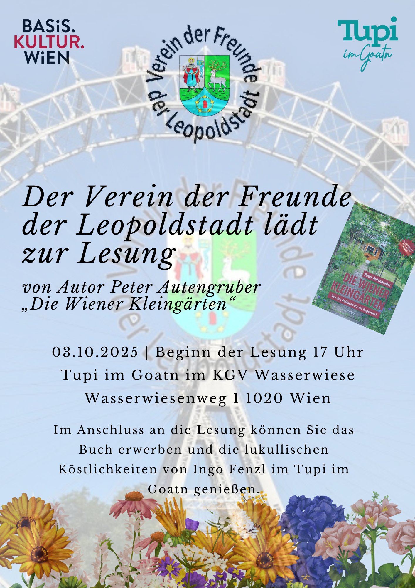 Im Anschluss an die Lesung können Sie das Buch erwerben und die lukullischen Köstlichkeiten von Ingo Fenzl im Tupi im Goatn genießen